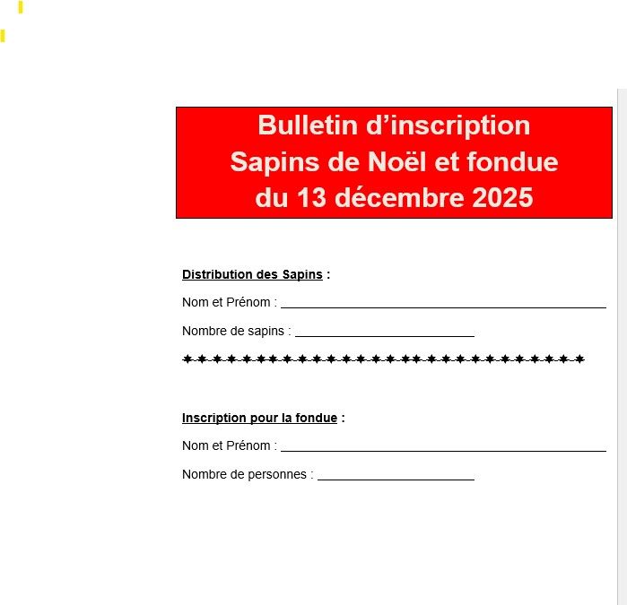 Pour les personnes qui désirent un sapin, afin d’éviter trop de pertes, la Municipalité a décidé que, dès cette année, la fourniture des sapins, toujours gratuite, se ferait sur inscription.